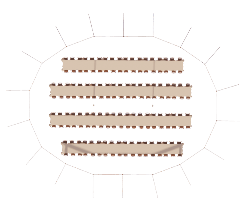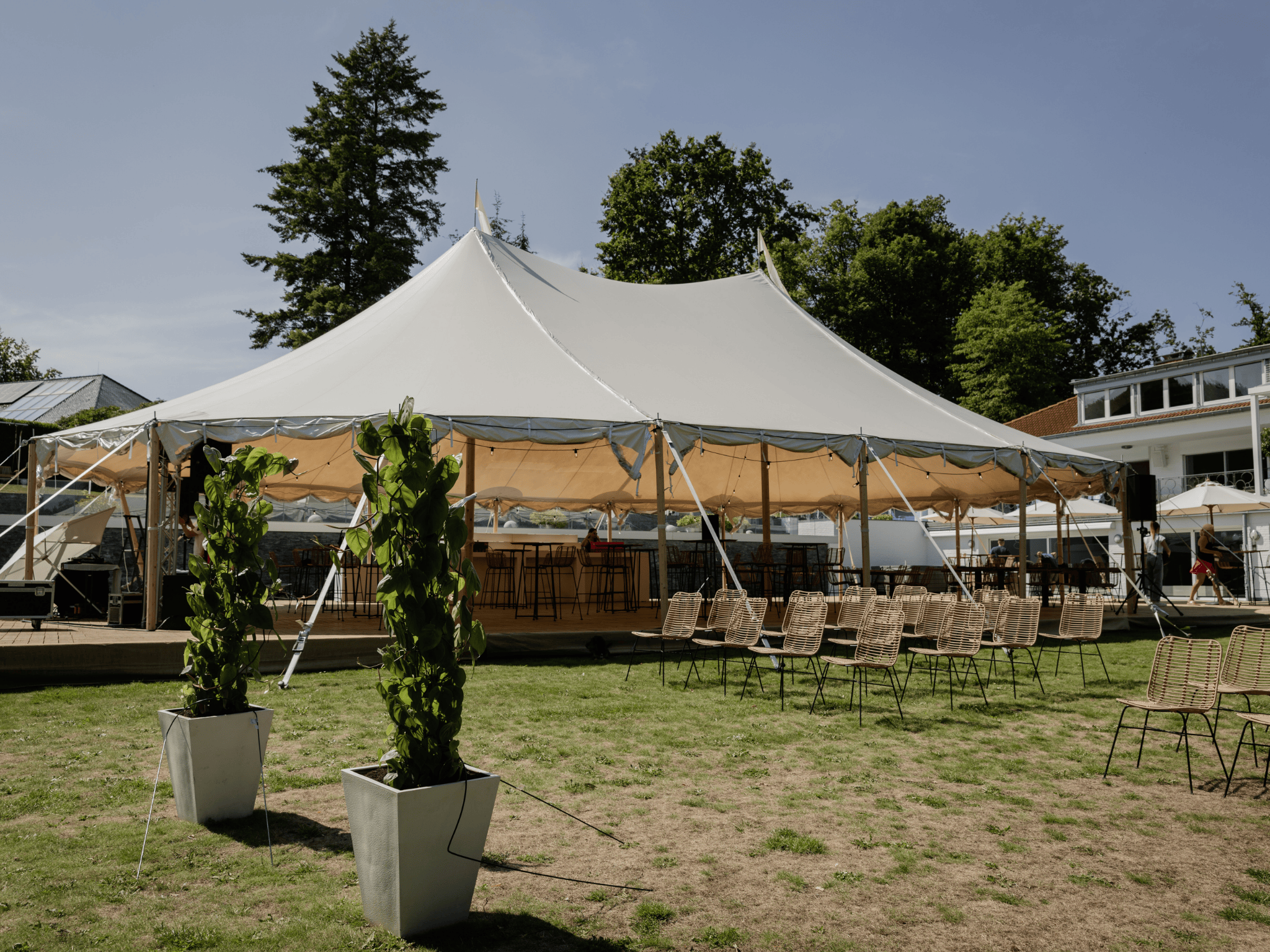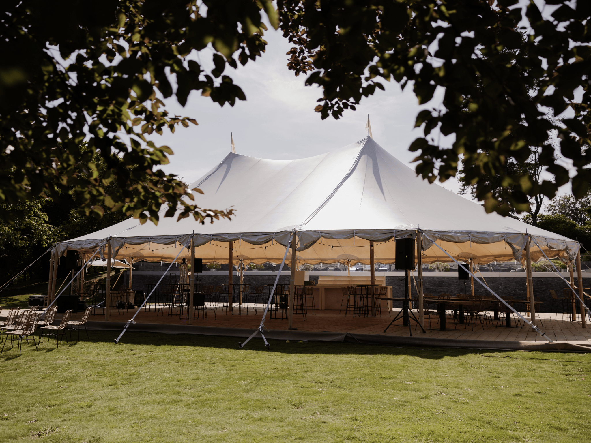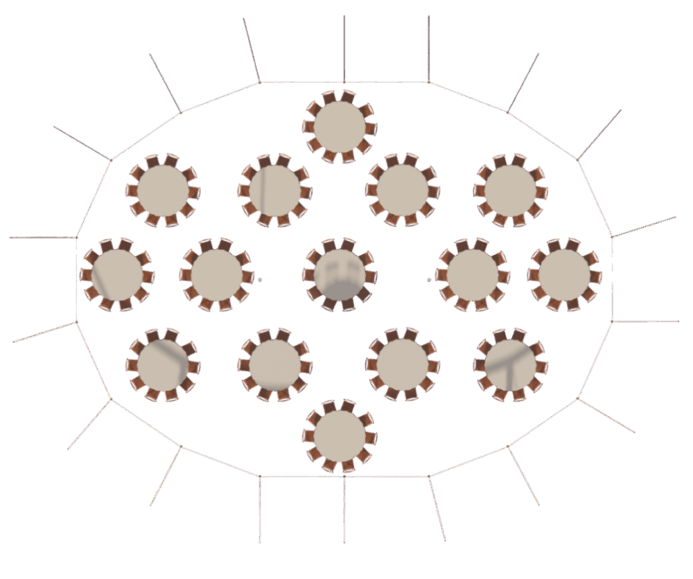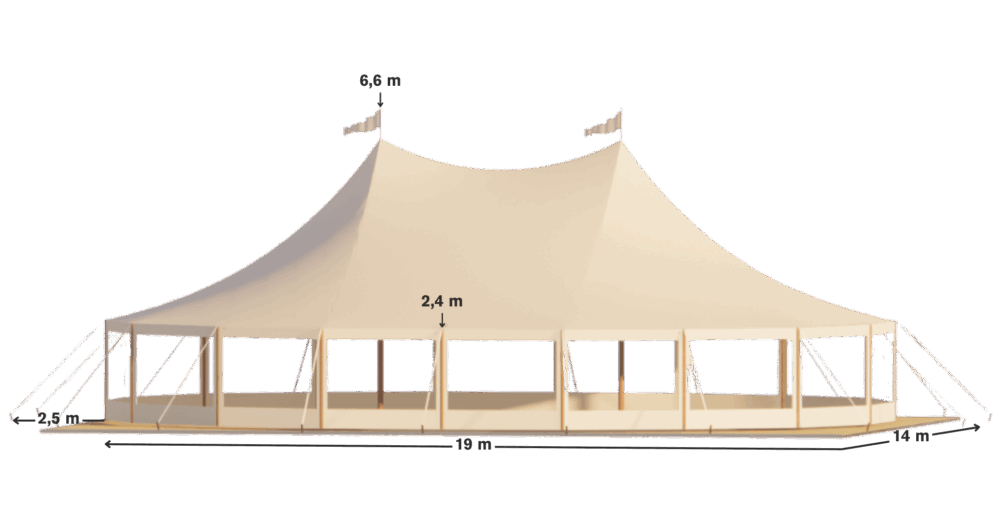 Élancée, lumineuse et emblématique, la Tente Silhouette 14 × 19 m offre un espace généreux de 266 m² pensé pour accueillir de grands moments avec élégance. Sa hauteur centrale impressionnante et ses lignes fluides créent un volume spectaculaire tout en restant harmonieux avec le paysage. Conçue avec des matériaux haut de gamme, elle assure une stabilité parfaite et un rendu visuel d’exception, idéal pour les mariages, galas et réceptions de grande ampleur.