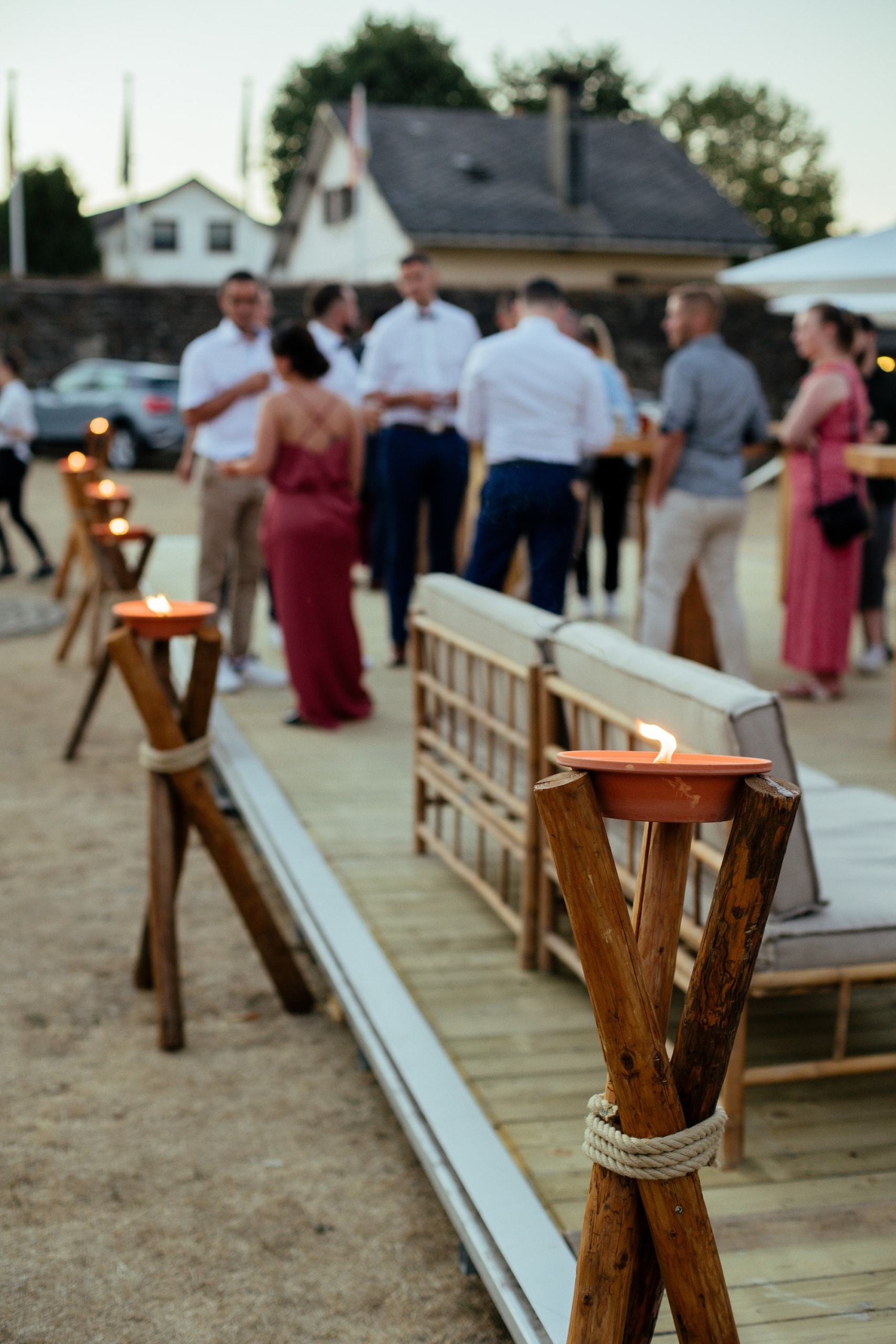La construction rustique en bois du trépied, combinée à une corde, offre non seulement une base stable pour les brûlots, mais s’intègre également parfaitement dans les concepts de décoration naturels et rustiques. Ce design apporte une touche de naturel et d’élégance à chaque événement, créant une ambiance chaleureuse et accueillante.